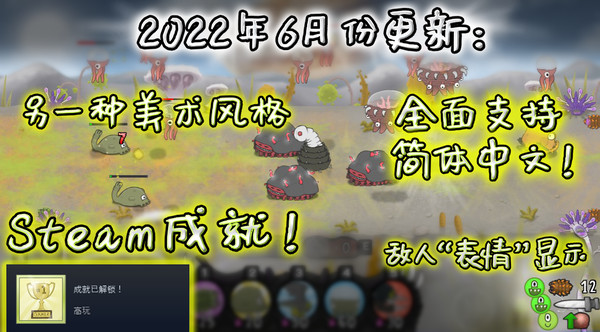 本作史上最大更新2.0版来了!本次更新内容有:另一种可选美术风格、Steam成就系统,敌军“表情”显示以及更方便的难度调整;更不用说,游戏现在全面支持简体中文!